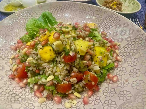 マンゴー入り♪雑穀マッタライスサラダマンゴーのケララ米サラダ、イケます!冷やしておいたハマムマンゴーを最後に入れたので、その甘冷たさがじぃん✨···
